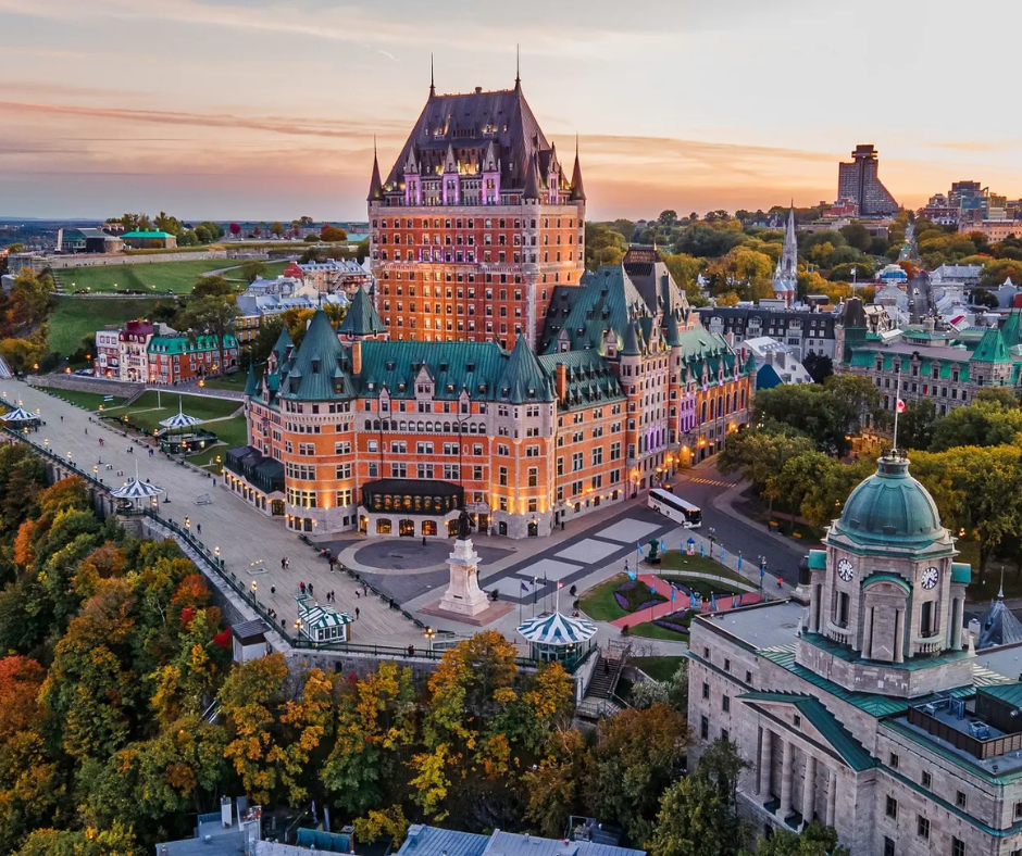 Québec, Terraço Dufferin, Château Frontenac, ruas Saint-Jean e Grande-Allée e Vieux-Port. Tempo livre à noite. Hospedagem em Quebec.