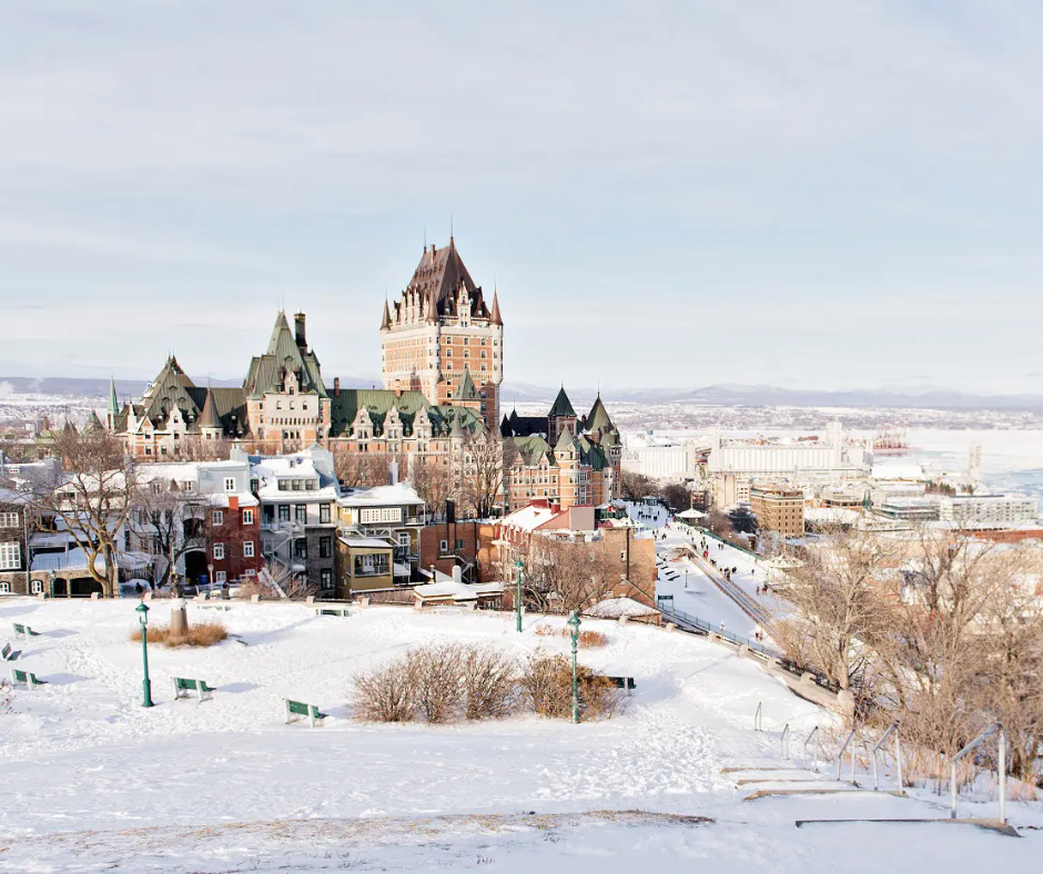 Café da manhã no hotel. Visita da cidade de Québec à pé. Duração: aproximadamente 2h30. Passeio pelos seguintes lugares: Praça das Armas, Praça Real, bairro Petit Champlain, Parlamento da Província, Terraço Dufferin, Château Frontenac, ruas Saint Jean e Grande Allée, Vieux-Port e as famosas Planícies de Abraham. Tempo livre. Hospedagem em Québec.