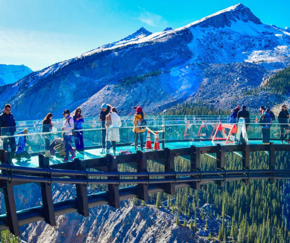 Athabasca, onde se fará um passeio de Snowcoach (incluído). À continuação, visita ao cânion Maligne, considerado um dos mais belos das Rochosas. Hospedagem em Jasper.