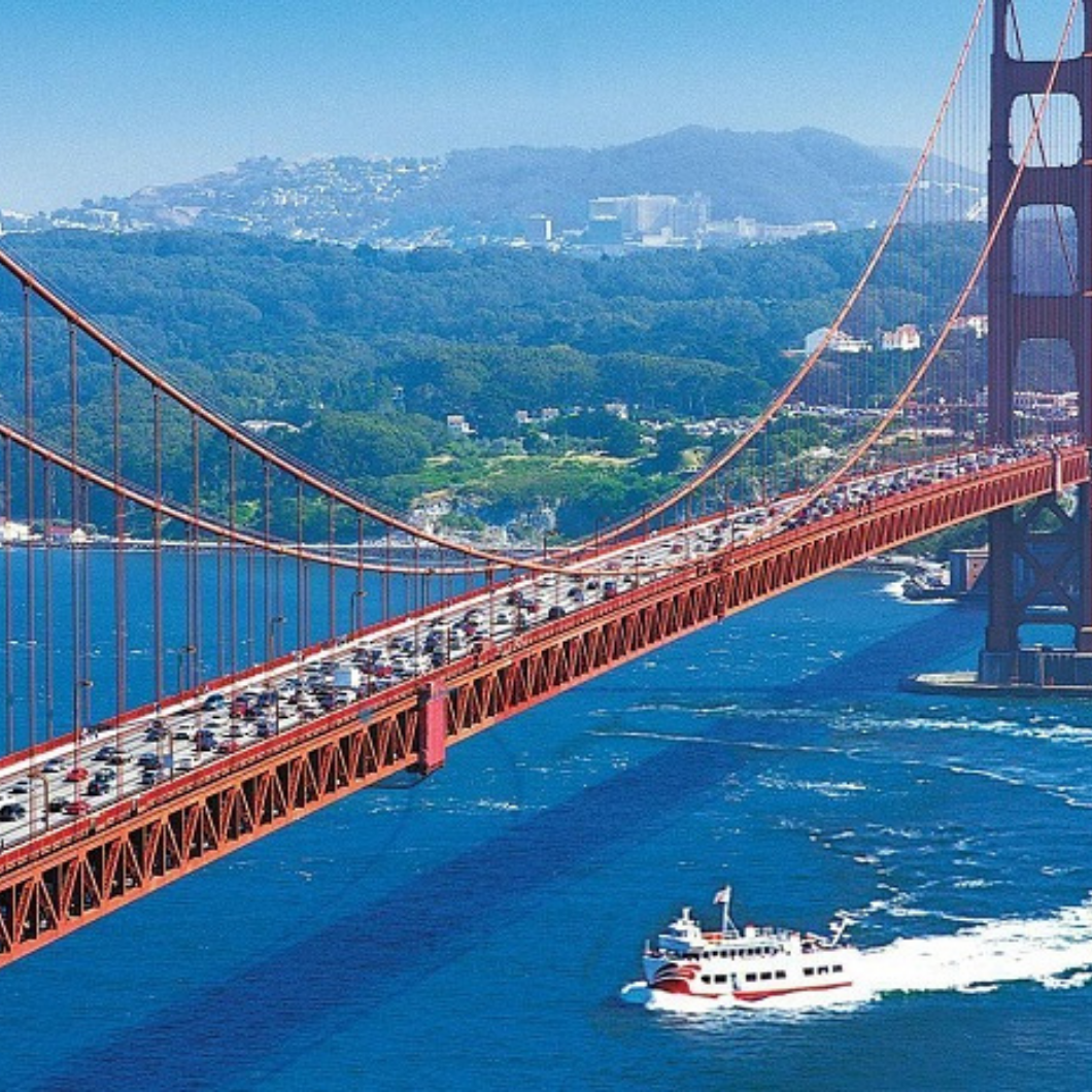 Café da manhã americano. Pela manhã, visita panorâmica pela cidade, incluindo o centro comercial e financeiro, com paradas no Centro Cívico, Twin Peaks, Golden Gate Park, Golden Gate Bridge e finalizando no Fisherman’s Wharf.