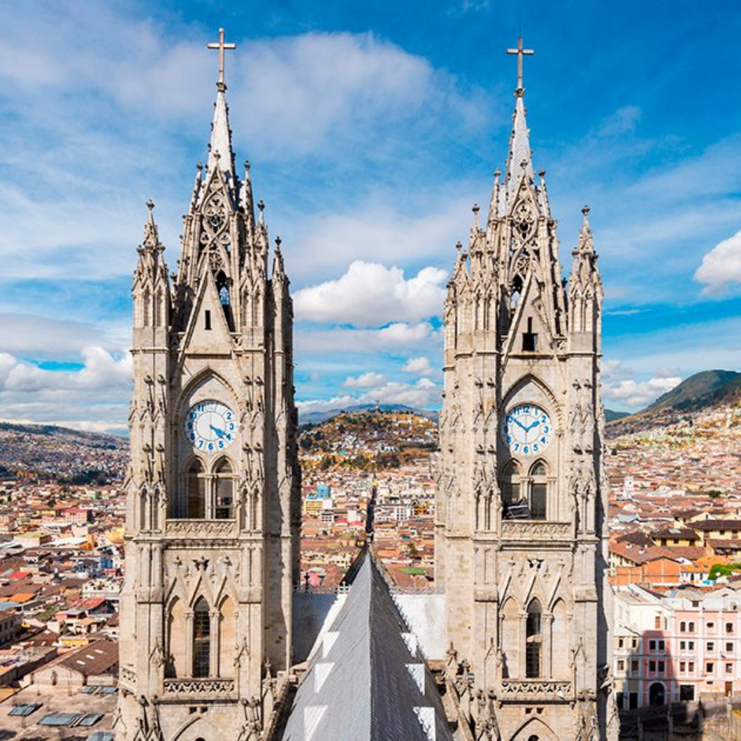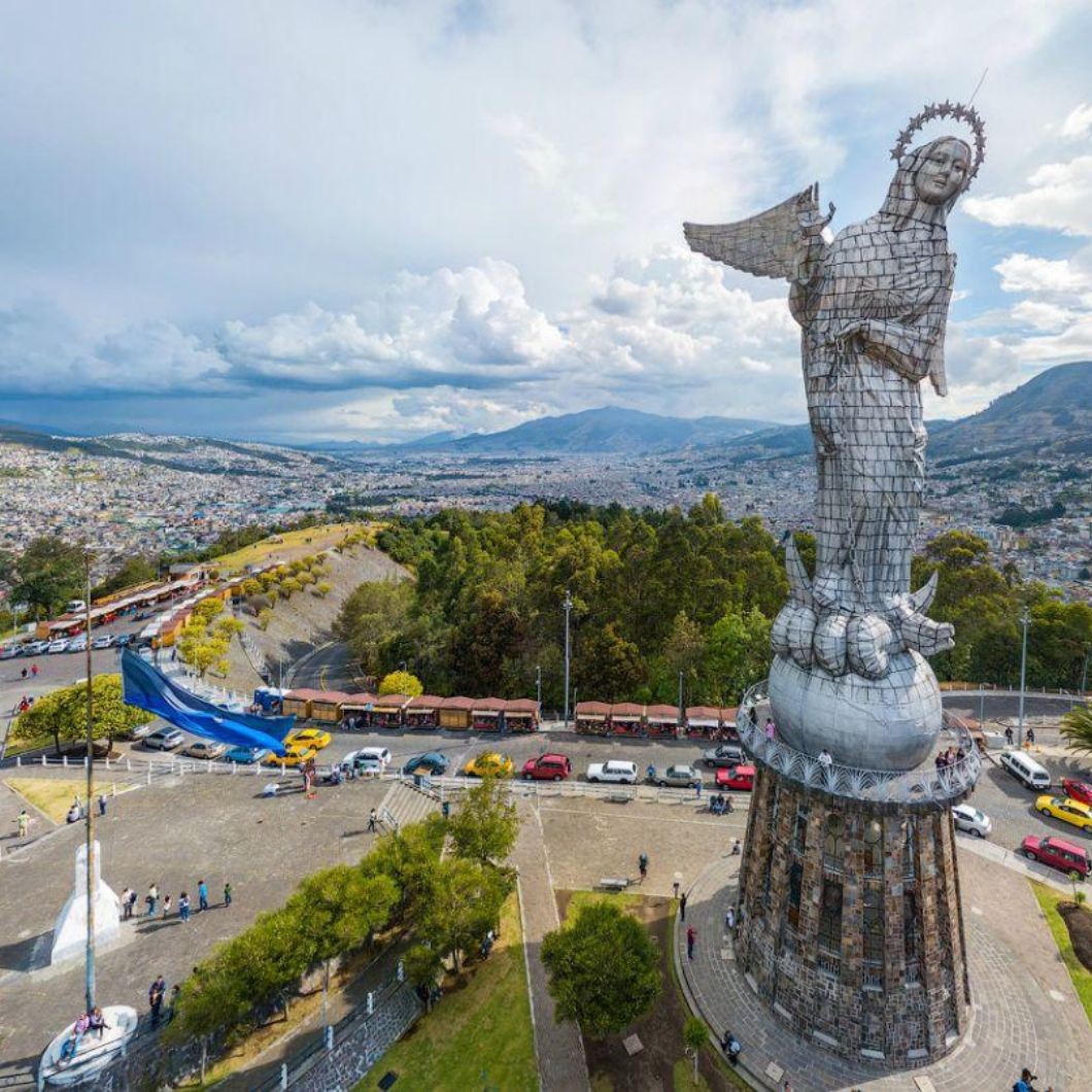 Café da manhã no hotel. Saída para visita pela cidade de Quito, que possui um dos maiores e mais bem preservados centros históricos coloniais da América do Sul. Durante o passeio, visitaremos a Praça da Independência (Plaza Grande), a icônica Igreja La Compañía de Jesús – considerada uma das mais belas igrejas da América do Sul –, além da Igreja e Mosteiro de São Francisco e da estátua da Virgem do Panecillo, que domina a paisagem da cidade.