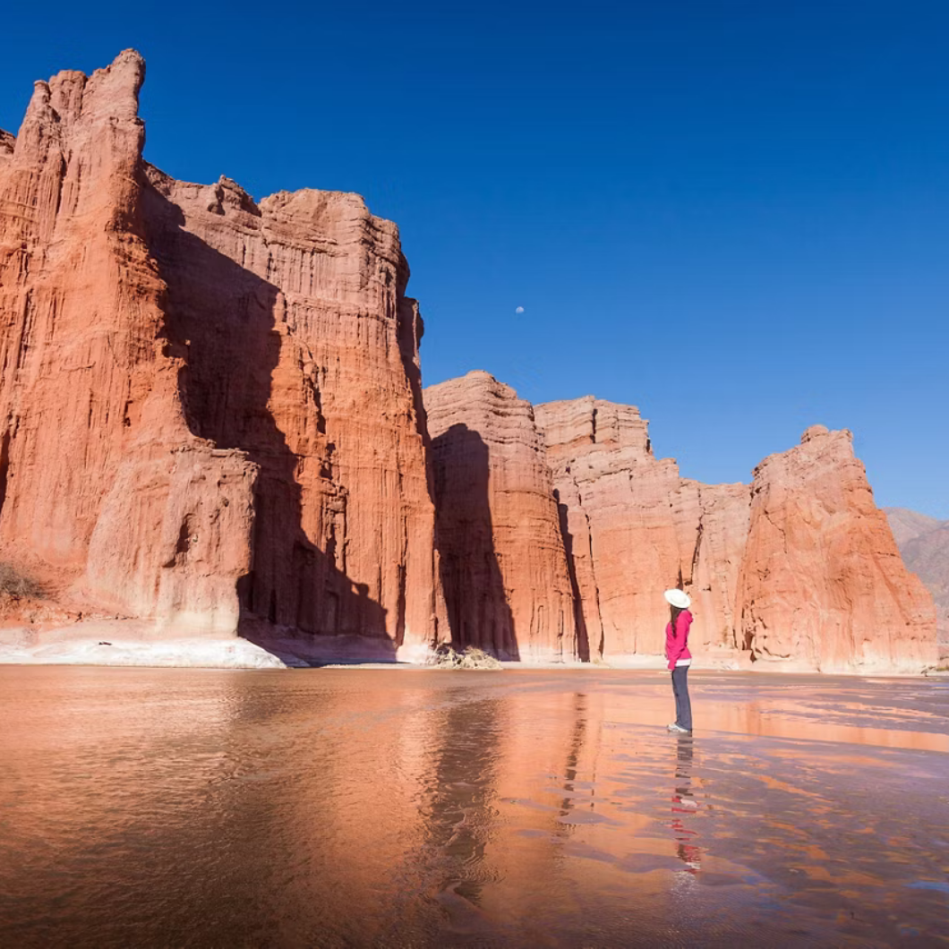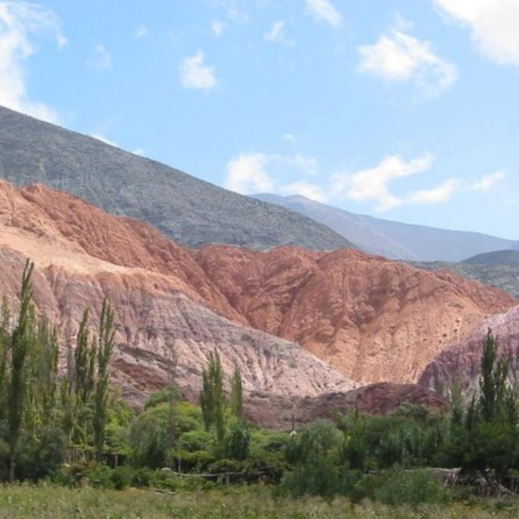 Café da manhã no hotel. Em horário previamente combinado, saída para Humahuaca. A viagem parte de Salta e segue até a vila de Purmamarca, onde haverá tempo para observar o Morro das Sete Cores, a igreja e o mercado de artesanato na praça, além de uma pequena caminhada por suas ruas estreitas. Continuação até Tilcara, onde visitaremos o Pucará (ruínas antigas), o Museu Arqueológico e Huacalera. Em seguida, cruzaremos o Trópico de Capricórnio, de onde será possível apreciar as cores do Monte La Pollera del Coya e tirar ótimas fotos. Visitaremos Uquía e sua igreja, onde estão as pinturas dos Anjos de Arcabuceros, importante vestígio da escola Cuzqueña. Chegada a Humahuaca por volta do meio-dia, onde conheceremos a igreja local e o Monumento da Independência (o Índio), do escultor Soto Avendaño. Após o almoço (não incluído), observaremos, durante o percurso de retorno, La Paleta del Pintor, enquadrando a cidade de Maimará. Retorno a Salta. Hospedagem.